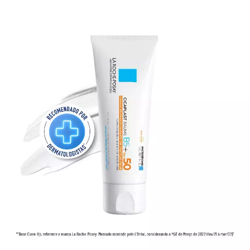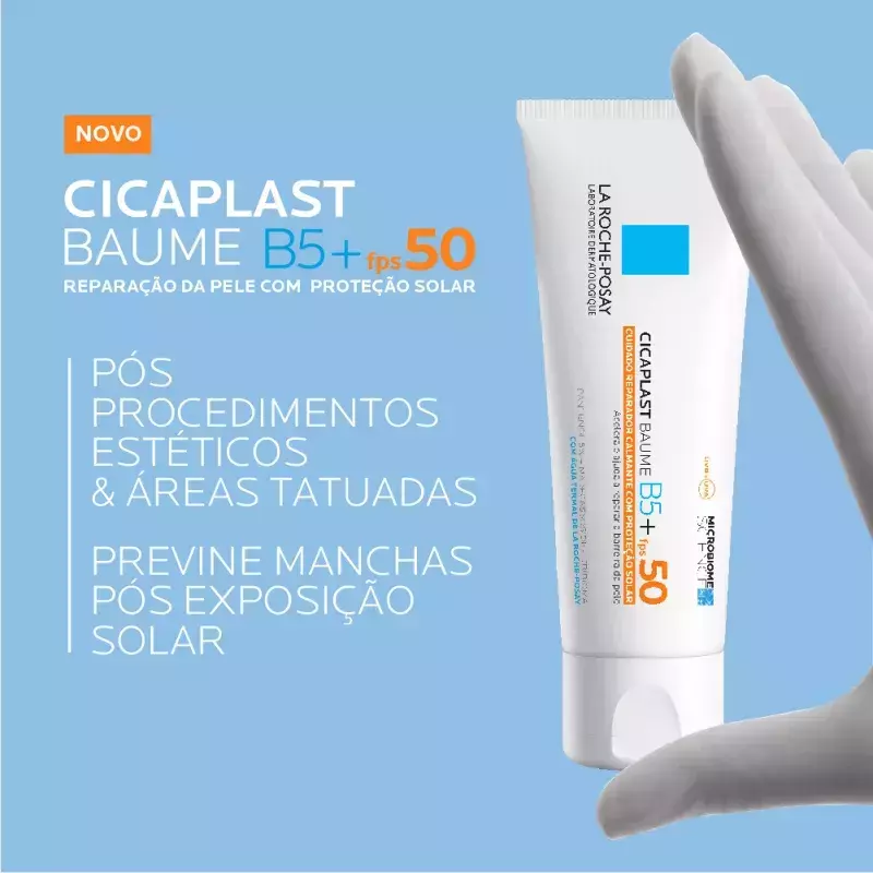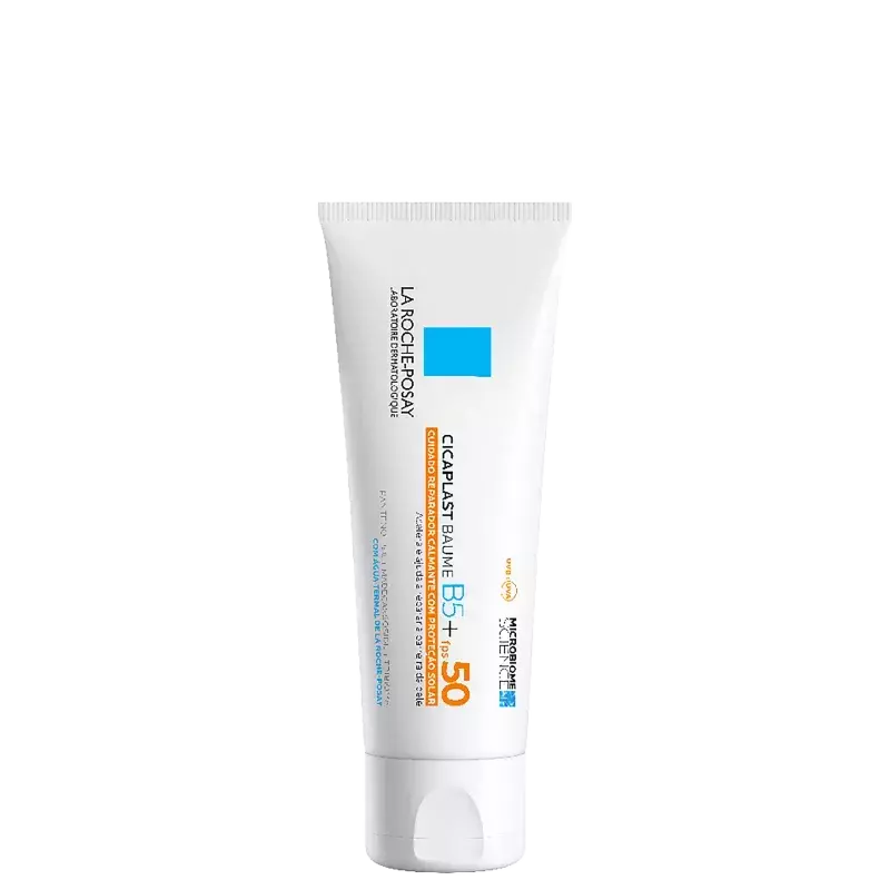 O Reparador Facial La Roche-Posay Cicaplast Baume B5+ FPS50 é um cuidado multifuncional que acalma, repara e protege a pele sensibilizada ou fragilizada com alta proteção solar. Enriquecido com Tribioma, 5% de Pantenol, Madecassoside e Procerad™, sua fórmula pró-massagem acelera a recuperação da barreira cutânea, previne manchas solares e oferece proteção contra os raios UV. Ideal para peles sensíveis, tatuadas ou após procedimentos estéticos superficiais, proporciona alívio imediato, toque confortável e é livre de perfume.
