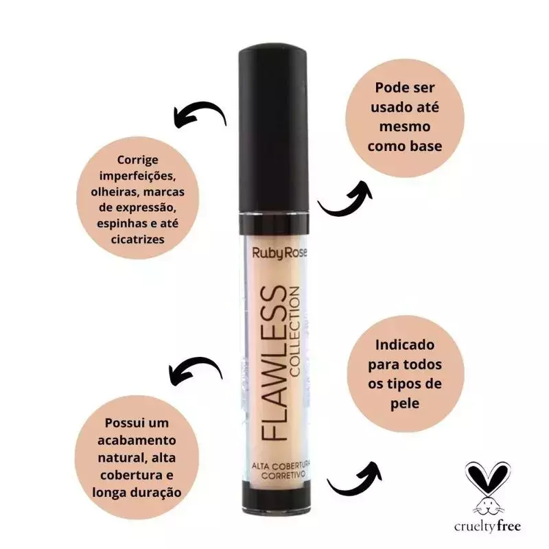 Corretivo Alta Cobertura O Corretivo Flawless Collection é indicado para todos os tipos de pele, possui uma fórmula capaz de corrigir imperfeições, olheiras, marcas de expressão, espinhas e até cicatrizes. O corretivo possui um acabamento natural, alta cobertura e longa duração podendo ser usado até mesmo como base. . Modo de Uso Com o aplicador, deposite o corretivo nas áreas que deseja disfarçar e corrigir. Com leve batidinhas, com esponja ou a ponta dos dedos, até espalhar uniformemente o produto sem marcas na pele.