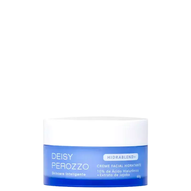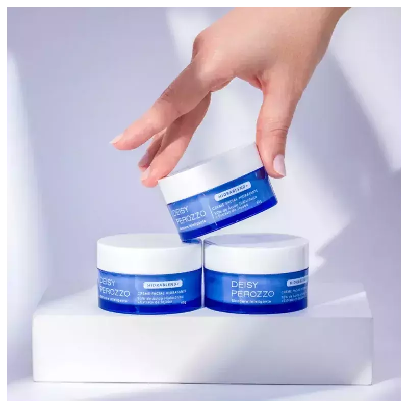 O Creme Facial Hidratante Deisy Perozzo Hidrablend+ é um creme facial ultra hidratante de toque seco e aveludado. Sua formula exclusiva conta com dois ativos poderosos: Ácido Hialurônico e Jojoba. A combinação desses dois poderosos ativos é surpreendente, hidratação intensa, sem pesar, sem deixar resíduos, entregando toque seco e aveludado.