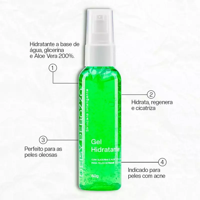 O Gel Hidratante Com Glicerina Basics Deisy Perozzo é formulado com Aloe Vera, que garante leveza e hidratação na medida certa para peles oleosas. Contém uma dose extra de Glicerina para hidratar e garantir que sua maquiagem dure horas e horas intacta. O produto é indicado para peles oleosas, tem absorção imediata e ajuda a fixar a maquiagem.